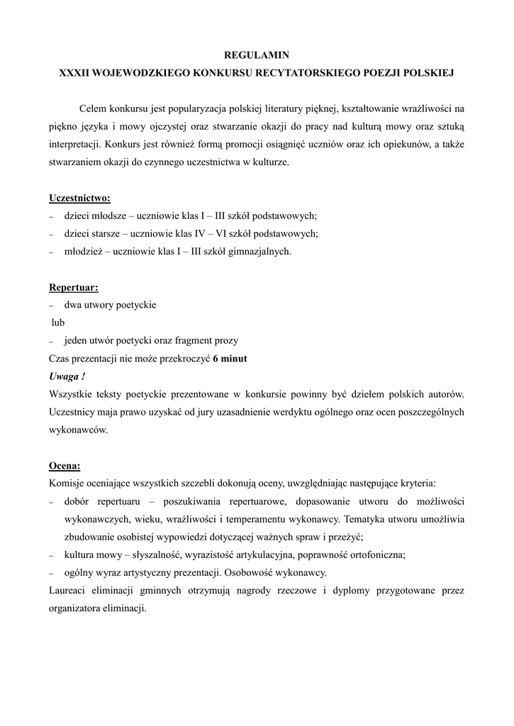 REGULAMIN XXXII WOJEWODZKIEGO KONKURSU