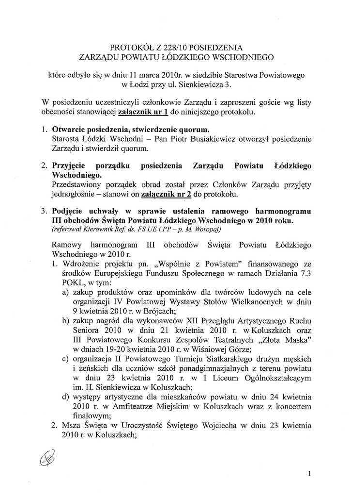 PROTOKÓŁ Z 228/1 O POSIEDZENIA