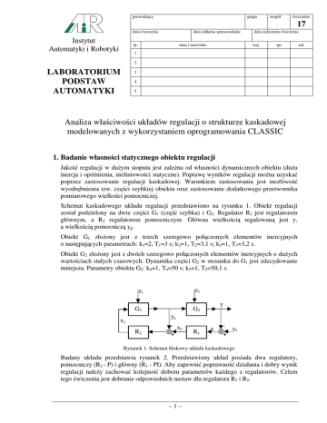 Analiza właściwości układów regulacji o strukturze kaskadowej