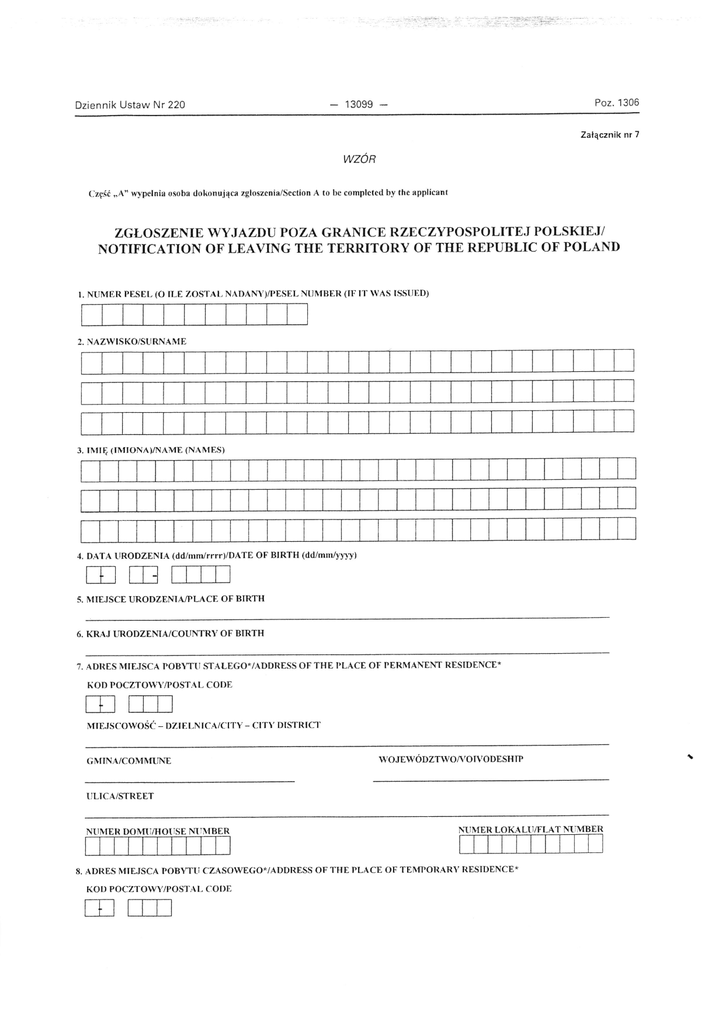 Pr4lqto zgloszerrie uljazdu poza granicrr Rzeczypospolitcj PolskiejlThe notitication ofleaving the territory of the Republic ofPoland is hereby
