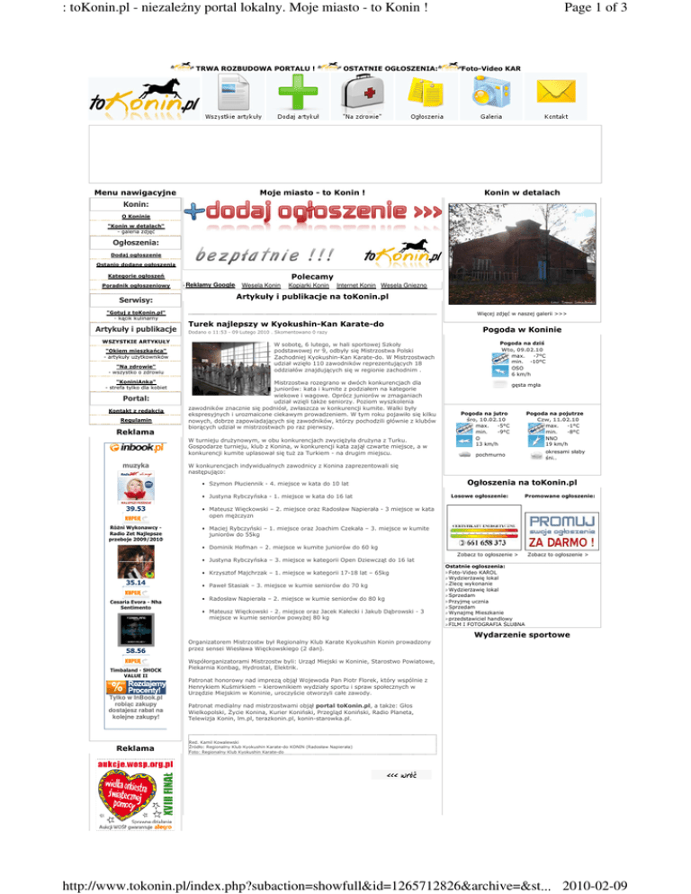 : toKonin.pl - niezale ny portal lokalny. Moje miasto - to Konin ! $( ' ( ";) ' ($'9) / + !$'$,%& . Page 1 of 3 * !"&,%': < .= '( 9 / + Reklamy Google Wesela Konin Kopiarki Konin ' Internet Konin Wesela Gniezno 0 ) $ . ! "#$ %" "&' ( !"#!$ %& '($# )*# " ) 0 , + + *+ * , #* , 1 " , 1 , ' - ( + ( ,* , + ) 5 - (* * - ( ) (, ,- , - ( , 1 , 4 ( , (( 1 7 4 ( & * , ( ( &/ ( ( &) (&) ( * - , & * ( ( , 2 (& , , , 1 234 35 63 ( J& ?K= ( & "K= 3'3 + (L , , - ( &3- - ' / &) . . 1 . - III . & * 263 35 63 ( J& K= ( & #K= 3 ! (L , 8 266 35 63 ( J& K= ( & 2K= <<3 # (L , ( - ,( E & & - - *'+ ,* ! 7 ' ( / 7 8 9 7 . - ) 7 . 6&( : " &( + ; %&( 9 9 <- : + : !( ( 9 : ; &( 8 ,( = ; !&( ( " # $ %&&'(%&)& 7 ( > ( ; %&( ( +" 0 7 8 9 : ; !&( 3- I 0 I + : 7 1 *,+ )1 - ./ . 7 / <- 7 . ( ,8+ ,9 2 "! 3 4 56.7 7 Tylko w InBook.pl robi c zakupy dostajesz rabat na kolejne zakupy! ( + / ) 4 , ( 1 E( . ( ( - *F 1 9 &1 ( 1 G 9 D 9 B & ((; 1 * ) ( E ( 1 *1 *(& -* ( 1 : & -* 1 1 1 @ % *C 1 1 , 1 , 1 2" 8 2" 9 ( . *> 1 ( %&( - ) D M 1N93$ ) 0 ) '( / ( '( ) ( . , DH $. HD34359NDH N O$BP<N ;+ ?" ; %&( ( (. ) / > B ? 2 ( ) 3 ) / ; &( ; !&( 7 9 ! $0 , ' 13<H <@ 9 1 1 A & . 8 ! 1 , 1 1 *' / / - D - - / * - * , & */ 1 : & -& <- * *9 5 / * A http://www.tokonin.pl/index.php?subaction=showfull&id=1265712826&archive=&st... 2010-02-09 : toKonin.pl - niezale ny portal lokalny. Moje miasto - to Konin ! ( + + $ ( Page 2 of 3 : > + / + N 4 E ( dodaj ( Q %""# ) - ( + ( + ( + ( + + - - 1 & - Szukaj ( ( + + http://www.tokonin.pl/index.php?subaction=showfull&id=1265712826&archive=&st... 2010-02-09 : toKonin.pl - niezale ny portal lokalny. Moje miasto - to Konin ! Page 3 of 3 ( + ( + ( + http://www.tokonin.pl/index.php?subaction=showfull&id=1265712826&archive=&st... 2010-02-09
