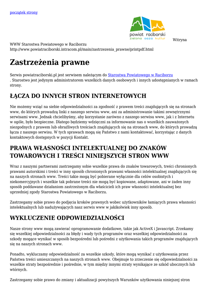 Zastrzeżenia prawne - Starostwo Powiatowe w