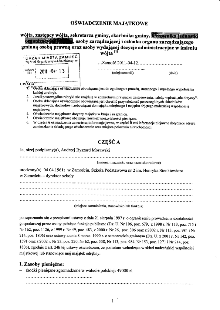 w części A oświadczenia uwarte Ę informacje jawne, w cŻęściB zaśinformacje niejawne dotycącę ad.esu