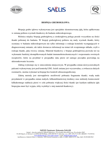 NZOZ Centrum Zdrowia SALUS BIOPSJA GRUBOIGŁOWA Biopsja