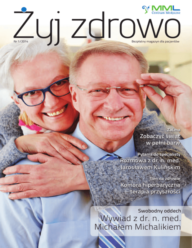 Nr 1/2014 Bezpłatny magazyn dla pacjentów Zaćma Zobaczyć świat w pełni barw Pytania do specjalisty Rozmowa z dr. n. med. Jarosławem Kulińskim Tlen na zdrowie Komora hiperbaryczna – terapia przyszłości Swobodny oddech Wywiad z dr. n. med. Michałem Michalikiem W NUMERZE Zaćma Zobaczyć świat w pełni barw 3 WioLEtta MiCHaLiK Redaktor Naczelna Szanowni Państwo, Usunięcie zaćmy Pytania do specjalisty Wywiad Swobodny oddech 5 7 z dumą oddajemy w Państwa ręce pierwszy numer naszego kwartalnika. Poruszane w nim tematy dotyczą zagadnień medycznych, którymi najczęściej są zainteresowani nasi pacjenci. W tym numerze powiemy, jak radzić sobie z chrapaniem i bezdechami, które powodują, że jesteśmy niewyspani, organizm jest zmęczony i szwankuje nasz metabolizm? Jakie nowoczesne rozwiązania oferujemy w leczeniu choroby starej jak świat, dawniej zwanej kataraktą a współcześnie po prostu zaćmą? O dobroczynnym działaniu tlenu, czyli o terapii w komorze hiperbarycznej. Centrum Medyczne MML to placówka nowoczesna, wychodząca naprzeciw oczekiwaniom świadomych swych potrzeb i praw pacjentom. Jesteśmy przekonani, że zadaniem placówek medycznych XXI wieku jest nie tylko leczenie dolegliwości swoich klientów (... tak klientów, bo współczesny pacjent to przede wszystkim wymagający klient), ich zadaniem jest propagowanie zdrowego trybu życia, wchodzenie w szeroko pojęty dialog społeczny, szukanie nowoczesnych rozwiązań dla medycznych wyzwań naszego stulecia. Serdecznie zapraszam Wioletta Michalik Tlen na zdrowie Komora hiperbaryczna – terapia przyszłości 10 WYDAWCA Centrum Medyczne MML ul. Bagno 2, wejście E, 00-112 Warszawa www.mml.com.pl Redaktor Naczelna: Wioletta Michalik Koncepcja i opracowanie: Marketing4Hire Projekt graficzny: Katarzyna Pogrzebska Kontakt z redakcją: [email protected] 2 | ŻYJ ZDROWO | 1/2014 ZAĆMA Zobaczyć świat w pełni barw Słowa portugalskiego laureata Literackiej Nagrody Nobla Jose Saramago mówią „Każdy ma taki świat, jaki widzą jego oczy”. ile jest prawdy w tym stwierdzeniu? Specjaliści z Centrum Medycznego MML podają, że najbardziej uciążliwą przeszkodą w widzeniu świata w pełni barw bywa zaćma. Z aćma, inaczej zwana kataraktą, to choroba oczu prowadząca do zmętnienia soczewki, co w konsekwencji może doprowadzić do całkowitej ślepoty. Dolegliwość ta polega na stopniowym i bezbolesnym pogarszaniu się ostrości widzenia, przez co pacjenci często nie są świadomi choroby. Na soczewce pojawiają się plamki i zmętniałe obszary, przez które promienie słoneczne nie mogą przedostać się do siatkówki. W efekcie widzimy rozmazane obrazy, stopniowo ostrość widzenia jest coraz gorsza, a w bardzo zaawansowanych przypadkach widzimy tylko światło i ciemność lub całkowicie tracimy zdolność widzenia. Zaćma w 90% jest związana z podeszłym wiekiem. Niestety, coraz częściej choroba ta jest diagnozowana u młodszych pacjentów, nawet 40-letnich. Jakość życia u osób dotkniętych tą chorobą ulega znacznemu pogorszeniu, słabe widzenie wiąże się często z zależnością od innych osób, a aktywność w pracy i w domu jest znacznie ograniczona. Warto pamiętać, że zaćma może być też przyczyną ślepoty u dzieci. Jest to wrodzona postać zaćmy i ujawnia się już w pierwszych miesiącach życia. Może być ona skutkiem przyjmowania niektórych leków lub zakażeń wewnątrzmacicznych w czasie ciąży. Jedyną skuteczną metodą leczenia zaćmy jest operacja. Specjaliści z Centrum Medycznego MML rekomendują wykonie zabiegu jak najwcześniej, ponieważ jest to bezpieczniejsze dla chorego, mniejsze ryzyko wystąpienia powikłań po operacji oraz szybsza rekonwalescencja. Operacja usunięcia zaćmy trwa około 20 minut, polega na rozbiciu i usunięciu własnej soczewki, a następnie wszczepie- sztuczną soczewkę. Współczesna medycyna oferuje szeroki wachlarz sztucznych soczewek, które skutecznie eliminują objawy tej uciążliwej choroby. Dokonując wyboru soczewki, pacjent powinien być poinformowany o jej właściwościach, jakości, mogących wystąpić powikłaniach, ale także o możliwościach poprawy jakości życia, jakie daje mu wszczep wybranej soczewki. Firma, z którą współpracuje Centrum Medyczne MML to lider wśród producentów soczewek wewnątrzgałkowych, oferuje soczewki pozwalające na równoczesną korekcję astygmatyzmu, występującego u bardzo licznej grupy pacjentów. Dodatkowo, dzięki soczewkom zaawansowanym technologicznie, stwarza się wielu pacjentom możliwość rezygnacji z noszenia okularów. Ważne jest, aby podczas konsultacji pacjent poznał W Centrum Medycznym MML wykonaliśmy z sukcesem ponad 1500 zabiegów usunięcia zaćmy. niu sztucznej soczewki zwijalnej o odpowiednio dobranych parametrach. Istotną rolę w przygotowaniu do zabiegu usunięcia zaćmy odgrywa diagnostyka. Leczenie zawsze należy zaczynać od konsultacji kwalifikującej, na której to lekarz okulista dokładnie zbada wzrok pacjenta oraz dobierze odpowiednią do wady wszystkie szczegóły zabiegu. Wiedza ta da mu poczucie komfortu i bezpieczeństwa. Pacjent odzyskuje wiarę w to, że może widzieć, tak jak przed chorobą i cieszyć się pełną aktywnością życiową. Więcej informacji na stronie http://www. okulistykamml.pl/ 1/2014 | ŻYJ ZDROWO | 3 USUNIĘCIE ZAĆMY Pytania do specjalisty Rozmowa z dr. n. med. Jarosławem Kulińskim, specjalistą chorób oczu, ordynatorem oddziału okulistycznego w Centrum Medycznym MML. Panie Doktorze, dlaczego warto, żeby pacjent, u którego zdiagnozowano lub podejrzewa się zaćmę trafił do Centrum Medycznego MML? W Centrum Medycznym MML skupiamy się na pacjencie i jego potrzebach. Kiedy trafia do nas pacjent z zaćmą, dobieramy najlepszy sposób leczenia, możliwy do zastosowania u danego pacjenta. Rozmawiamy z pacjentem o jego oczekiwaniach i wymaganiach, prezentujemy najnowsze dostępne technologie, dając możliw
