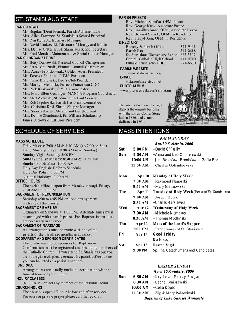 schedule of services mass intentions st. stanislaus staff