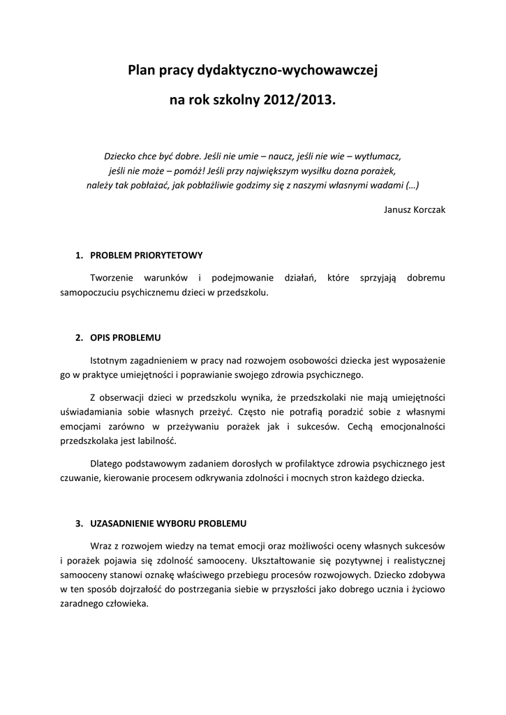 Plan pracy dydaktyczno-wychowawczej na rok szkolny 2012/2013.