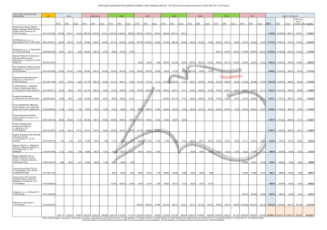 Lista wypłat wynagrodzeń dla wydawców książek z tytułu repartycji opłat (art. 20 i 20[1] prawa autorskiego) zebranych w latach 2003-2011 (VIII Transza) Pełna nazwa uprawnionionego + adres siedziby NIP 2003 WYN. UZN. 2004-2005 Koszt WYN. UZN. 2006 Koszt WYN. UZN. 2007 Koszt WYN. UZN. 2008 Koszt WYN. UZN. 2009 Koszt Wydawnictwo Szkolne OMEGA Dariusz Jodłowski, Witold Stachnik Spółka Jawna, Paszczyna 84, 39-207 Brzeźnica 872-12-52-204 455,99 518,41 62,42 3 090,54 3 702,85 612,31 2 007,05 2 506,88 499,83 1 294,00 1 579,43 285,43 949,00 1 087,12 138,12 CURRENDA sp. z o.o., al. Niepodległości 703A, 81-853 Sopot 585-134-90-01 122,40 139,16 16,76 709,92 850,57 140,65 501,12 625,92 124,80 186,83 751,00 109,30 Hortpress sp. z.o.o., ul. Rakowiecka 32, 02-532 Warszawa 526-000-23-46 35,81 40,71 4,90 235,97 282,72 46,75 86,46 107,99 21,53 Agencja Reklamowo-Wydawnicza Promocja Polska Tomasz Nalaskowski, ul. Filtrowa 27, 85-467 Bydgoszcz 967-004-49-49 Dom Wydawniczy "Ostoja" Andrzej Siekierżycki, ul. Targowa 29/12, 32065 Krzeszowice 676-120-05-89 130,02 147,82 17,80 784,64 940,10 155,46 326,16 407,39 Wydawnictwo Nowy Świat Kamil Witkowski, ul. Kopernika 30, 00-336 Warszawa 521-192-15-96 48,21 54,81 6,60 317,79 380,75 62,96 213,13 Von Borowiecky s.c., Majcherek Tadeusz, Sieciechowicz Marta, ul. Korczaka 9E, 05-250 Radzymin 527-102-54-11 69,16 78,63 9,47 421,75 505,31 83,56 Fundacja Ośrodka Karta, ul. Narbutta 29, 02-536 Warszawa 526-030-59-57 16,69 18,97 2,28 104,02 124,63 Pomoc Wydawnictwo Misjonarzy Krwi Chrystusa, ul. św. Kaspra del Bufalo 2/18, 42-221 Częstochowa 573-229-86-45 11,65 13,24 1,59 80,02 Oficyna Wydawnicza FOGRA Dariusz Czopek, ul. Pawia 12, 31154 Kraków 676-112-81-36 96,09 109,24 13,15 Printex Przedsiębiorstwo Wydawniczo-Handlowe, ul. Legionowa 13/4, 15-281 Białystok 542-100-28-78 74,07 84,21 Agencja Wydawnicza AD OCULOS K.Żmuda A.Żmuda, ul. Fircowskiego 7/1, 35-030 Rzeszów 951-00-60-709 3,74 Agencja "Solaris" s.c., Małgorzata Piasecka, Małgorzata Sedeńko, ul. Warszawska 25A, 11-034 Stawiguda 739-318-76-99 Zakład Poligraficzny MK s.c., Arkadiusz Morawski, Andrzej Klocek, ul. Waksmundzka 63a, 34-400 Nowy Targ 735-21-45-913 Wydawnictwo Bernard Cichosz, ul. Sucharskiego 15/21, 95-050 Konstantynów Łódzki Wydawnictwo STES Stanisław Siemiński Usługi Turystyczne i Oświatowe, ul. Moniuszki 11/47, 11-400 Kętrzyn Lingea sp. z o.o., ul. Moniuszki 19, 31-523 Kraków 675-13-49-634 Helion SA, ul. Kościuszki 1c, 44-100 Gliwice 631-020-02-68 847,00 1 033,83 860,30 WYN. 358,00 UZN. 437,80 2010 Koszt 79,80 WYN. UZN. 209,33 275,15 485,19 423,84 SUMY + WYPŁATA 2011 Koszt 65,82 WYN. 273,72 UZN. Koszt WYN. UZN. Koszt VAT od sumy kosztów Do wypłaty 7 796,58 9 394,69 1 598,11 367,57 7 429,01 326,00 52,28 3 772,49 4 548,73 776,24 178,54 3 593,95 637,76 152,57 1 175,06 1 399,50 224,44 2 018,49 2 468,68 450,19 103,54 1 914,95 557,12 133,28 53,39 1 993,38 2 432,33 438,95 100,96 1 892,42 1 844,82 2 225,35 380,53 87,52 1 757,30 30,00 36,62 6,62 455,00 521,22 66,22 805,00 984,44 179,44 81,23 435,00 530,95 95,95 98,00 112,26 14,26 71,00 86,83 15,83 266,21 53,08 141,00 172,10 31,10 219,00 250,87 31,87 209,00 255,59 46,59 181,09 238,03 56,94 512,06 609,86 97,80 1 841,28 2 228,22 386,94 89,00 1 752,28 191,28 238,92 47,64 215,00 262,42 47,42 255,00 292,11 37,11 212,00 259,26 47,26 174,03 228,75 54,72 299,02 356,13 57,11 1 837,24 2 221,53 384,29 88,39 1 748,85 20,61 96,76 120,86 24,10 530,00 607,14 77,14 190,00 232,35 42,35 113,58 149,30 35,72 419,72 499,89 80,17 1 470,77 1 753,14 282,37 64,95 1 405,82 95,87 15,85 37,53 46,88 9,35 86,00 104,97 18,97 220,00 252,02 32,02 202,00 247,03 45,03 232,44 305,53 73,09 579,16 689,78 110,62 1 448,80 1 755,32 306,52 70,50 1 378,30 634,94 760,74 125,80 400,76 500,56 99,80 147,00 179,42 32,42 142,00 162,67 20,67 1 420,79 1 712,63 291,84 67,12 1 353,67 10,14 478,71 573,55 94,84 362,95 453,34 90,39 311,00 379,60 68,60 1 226,73 1 490,70 263,97 60,71 1 166,02 4,25 0,51 24,65 29,53 4,88 11,16 13,94 2,78 50,00 61,03 11,03 13,72 15,60 1,88 90,45 108,37 17,92 47,82 59,73 11,91 49,00 59,81 10,81 9,56 10,87 1,31 56,97 68,26 11,29 30,42 38,00 7,58 727-105-71-39 35,18 43,94 8,76 35,00 42,72 7,72 109,00 124,86 15,86 43,00 52,58 9,58 742-104-80-83 112,40 140,39 27,99 18,00 21,97 3,97 118,00 135,17 17,17 60,00 73,37 13,37 71,00 81,33 10,33 279,54 163,00 199,33 36,33 123,56 162,41 38,85 131,11 156,15 25,04 578,22 707,97 129,75 29,84 548,38 56,00 68,48 12,48 42,72 56,15 13,43 90,23 107,46 17,23 389,94 475,60 85,66 19,70 370,24 279,86 333,31 53,45 376,81 450,44 73,63 16,93 359,88 112,93 134,50 21,57 335,11 398,60 63,49 14,60 320,51 308,40 370,90 62,50 14,38 294,02 306,70 562,00 1 087,11 1 235,92 685,96 148,81 7 030,37 8 423,25 1 392,88 4 460,18 5 570,95 1 110,77 4 220,00 5 150,83 123,96 861,00 986,31 930,83 4 778,00 5 473,38 125,31 332,93 451,00 551,53 695,38 2 820,00 3 448,59 100,53 593,48 780,10 628,59 2 579,26 3 390,30 365,28 58,58 306,70 365,28 58,58 13,47 293,23 186,62 2 223,98 2 648,76 424,78 4 691,46 5 652,66 961,20 221,08 4 470,38 811,04 6 683,09 7 959,55 1 276,46 33 658,01 40 652,77 6 994,76 1 608,80 32 049,21 SAiW „Polska Książka”, opracowano: kwiecień 2013 na podst. uchwał Zarządu z 24 XI 2010 (Z/13/10), 7 X 2004 (Z/30/04), 11 XII 2007 (Z/13/07), 8 VI 2006 (Z/9/06), 27 II 2007 (Z/02/07), 26 I 2009 (Z/1/09), 24 XI 2010 (Z/12/10), 10 XII 2009 (Z/15/09), 31 III 2010 (Z/1/10), 18 XI 2009, (Z/14/09), 22 XII 2011 (Z/23/11), 9 IV 2010 (Z/5/10), 22 XII 2011 (Z/22/11), 2 IV 2012 (Z/5/12), 2 IV 2012 (Z/6/12), 16 IV 2012 (Z/9/12), 14 VI 2012 (Z/13/12),14 VI 2012 (Z/14/12, 18 VI 2012 (Z/20/12)