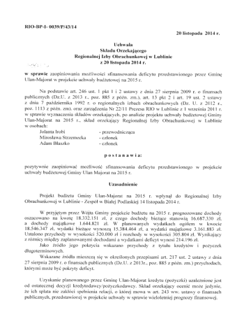 Pro.iekt budzetu Gminy Ulan-Majorat na 2015 r. 1a'piyn4l do Regionahrej lzby