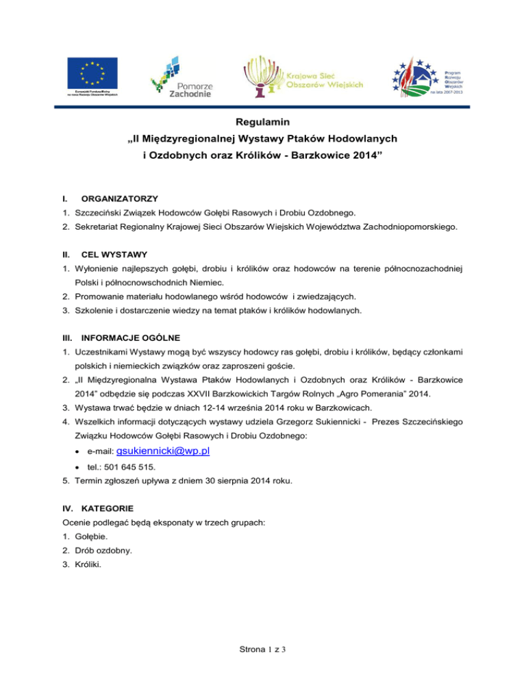 Regulamin - Szczeciński Związek Hodowców Gołębi Rasowych i
