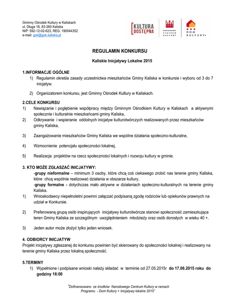 Regulamin konkursu Kaliskie inicjatywy lokalne 27.05