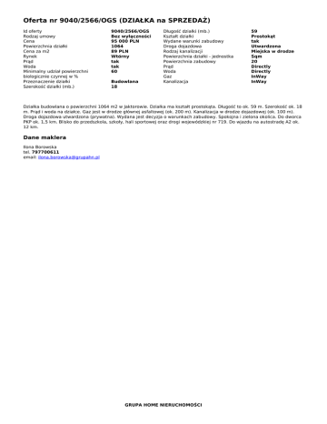 Oferta nr 9040/2566/OGS (DZIAŁKA na SPRZEDAŻ)