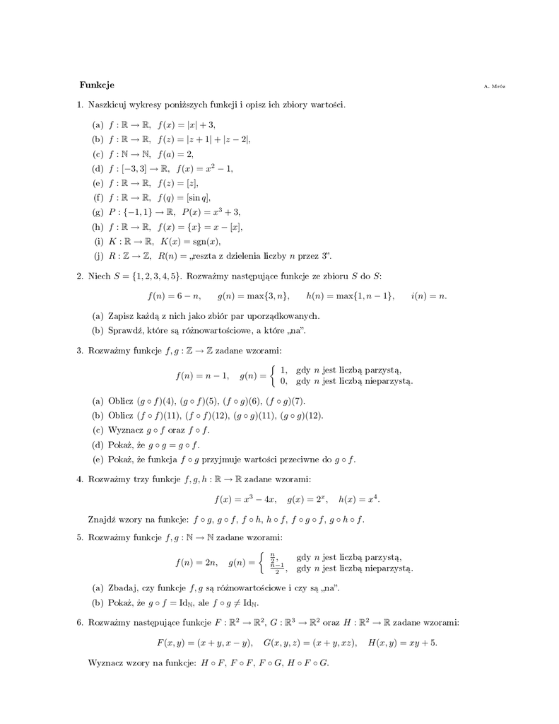 Rozwa»my nast¦puj¡ce funkcje ze zbioru
