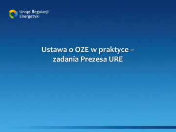 Ustawa o OZE w praktyce – zadania Prezesa URE KONCESJONOWANIE 2 Definicje Ustawa określa m.in.: mechanizmy i instrumenty wspierające wytwarzanie energii elektrycznej z odnawialnych źródeł energii w instalacjach odnawialnego źródła energii (art. 1 ust. 1 pkt 2 lit a ustawy). Instalacja odnawialnego źródła energii (art. 2, pkt 13 ustawy) - instalacja stanowiąca wyodrębniony zespół: a) urządzeń służących do wytwarzania energii i wyprowadzania mocy, przyłączonych w jednym miejscu przyłączenia, w których energia elektryczna lub ciepło są wytwarzane z jednego rodzaju odnawialnych źródeł energii, a także magazyn energii elektrycznej przechowujący wytworzoną energię elektryczną, połączony z tym zespołem urządzeń lub b) obiektów budowlanych i urządzeń stanowiących całość techniczno-użytkową służący do wytwarzania biogazu rolniczego, a także połączony z nimi magazyn biogazu rolniczego; Inne przepisy podmiotowo definiujące urządzenia wytwórcze, zawsze odwołują się do instalacji odnawialnego źródła energii (mikroinstalacja, mała instalacja, dedykowana instalacja spalania biomasy, instalacja spalania wielopaliwowego itd.). 3 Definicje Mikroinstalacja - instalacja odnawialnego źródła energii o łącznej mocy zainstalowanej elektrycznej nie większej niż 40 kW, przyłączona do sieci elektroenergetycznej o napięciu znamionowym niższym niż 110 kV lub o mocy osiągalnej cieplnej w skojarzeniu nie większej niż 120 kW; Mała instalacja - instalacja odnawialnego zainstalowanej elektrycznej większej niż 40 przyłączona do sieci elektroenergetycznej o niż 110 kV lub o mocy osiągalnej cieplnej w i nie większej niż 600 kW. 4 źródła energii o łącznej mocy kW i nie większej niż 200 kW, napięciu znamionowym niższym skojarzeniu większej niż 120 kW Zasady wejścia na rynek (1) Koncesja – podjęcie i wykonywanie działalności gospodarczej w zakresie wytwarzania energii elektrycznej z odnawialnych źródeł energii wymaga uzyskania koncesji na zasadach i warunkach określonych w ustawie – Prawo energetyczne, z wyłączeniem wytwarzania energii elektrycznej: 1) w mikroinstalacji – „rejestr OSD”; 2) w małej instalacji – rejestr Prezesa URE; 3) z biogazu rolniczego – rejestr Prezesa ARR; 4) wyłącznie z biopłynów – rejestr Prezesa ARR. 5 Zasady wejścia na rynek (2) w art. 32 w ust. 1 pkt 1 otrzymuje brzmienie: „1) wytwarzania paliw lub energii, z wyłączeniem wytwarzania: a) paliw stałych lub paliw gazowych, b) energii elektrycznej w źródłach o łącznej mocy zainstalowanej elektrycznej nieprzekraczającej 50 MW niezaliczanych do instalacji odnawialnego źródła energii lub do jednostek kogeneracji, c) energii elektrycznej w mikroinstalacji lub w małej instalacji, d) energii elektrycznej: – z biogazu rolniczego, – wyłącznie z biogazu rolniczego w kogeneracji, – wyłącznie z biopłynów w rozumieniu ustawy z dnia 20 lutego 2015 r. o odnawialnych źródłach energii, e) ciepła w źródłach o łącznej mocy zainstalowanej cieplnej nieprzekraczającej 5 MW;”; 6 Studium przypadków Studium przypadków Instalacje „mix” OSD granica stron licznik netto energii elektrycznej WIL PVA Opłaty Jednocześnie zwracam uwagę, że w przypadku koncesji - art. 9e (w tym ust. 18 pkt 3 uPE, tj. zwolnienie z opłaty skarbowej za wydanie koncesji na wytwarzanie energii elektrycznej w instalacjach odnawialnych źródeł energii o łącznej mocy elektrycznej nieprzekraczającej 5 MW) traci moc z dniem 1 stycznia 2016 r. 10 REJESTR MIOZE 11 Część merytoryczna 1. Dokumenty niezbędne do dokonania wpisu: a) Wniosek o wpis do RMIOZE (wzór rozporządzenie MG); b) Oświadczenia wytwórcy ubiegającego się o wpis do RMIOZE c) Opłata skarbowa za wpis do rejestru działalności regulowanej (część I pkt 36 załącznika do ustawy z dnia 16 listopada 2006 r. o opłacie skarbowej /Dz. U. z 2015 r. poz. 783, z późn. zm./) wynosi 616 zł. Część merytoryczna - terminy Ustawa z dnia 20 lipca 2004 r. o swobodzie działalności gospodarczej (Dz. U. z 2015 r. poz. 584, z późn. zm.) 7 dni (od daty dnia wpływu wniosku o wpis) to termin na: - dokonanie wpisu przedsiębiorcy do rejestru działalności regulowanej (Art. 67 ust. 1) - wezwanie do uzupełnienia wniosku (termin na dokonanie wpisu biegnie odpowiednio od dnia wpływu uzupełnienia). 14 dni – przedsiębiorca jest obowiązany zgłosić zmianę danych wpisanych do rejestru lub zakończenie/zawieszenie wykonywania działalności. Jeżeli organ prowadzący rejestr działalności regulowanej nie dokona wpisu w terminie, o którym mowa w ust. 1, a od dnia wpływu wniosku do tego organu upłynęło 14 dni, przedsiębiorca może rozpocząć działalność (Art. 67 ust. 2). Część techniczna 1. Wpis do rejestru wytwórców energii w małej instalacji (data wpisu/data rozpoczęcia działalności); 2. Aktualizacja Bazy URE; Poinformowanie DSW o dokonanym wpisie/zmianie; 3. Zaświadczenie o wpisie do RMIOZE (propozycja dodania informacji o obowiązku składania sprawozdań – art. 9 ust. 1 pkt 6 i 7) nowy wzór, archiwizowanie wydanych zaświadczeń do użytku wspólnego; 4. Wykreślenie z RMIOZE; 5. Archiwizowanie wpisów wykreślonych z RMIOZE; 6. Sprawozdania roczne i kwartalne Studium przypadku 1. Przedsiębiorca wystąpił do PURE o udzielenie koncesji na wytwarzanie energii elektrycznej w instalacji odnawialnego źródła energii w jednostce kogeneracji, gdzie moc zainstalowana elektryczna jednostki jest mniejsza niż 200 kW; 2. Przedsiębiorca informuje PURE o czasowym zawieszeniu działalności w zakresie MIOZE; 3. Mała instalacja - instalacja odnawialnego źródła energii o łącznej mocy zainstalowanej elektrycznej większej niż 40 kW i nie większej niż 200 kW, (…) lub o mocy osiągalnej cieplnej w skojarzeniu większej niż 120 kW i nie większej niż 600 kW – co jeśli Przedsiębiorca posiada instalację o mocy zainstalowanej elektrycznej w