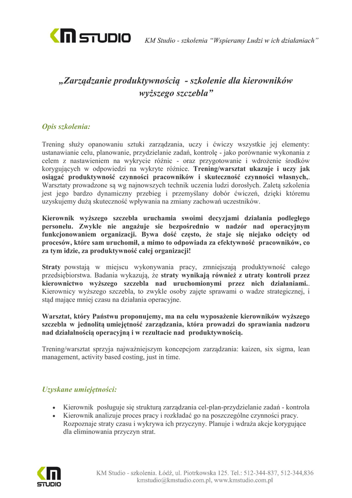 Zarządzanie dla zwiększenia produktywności - KM Studio