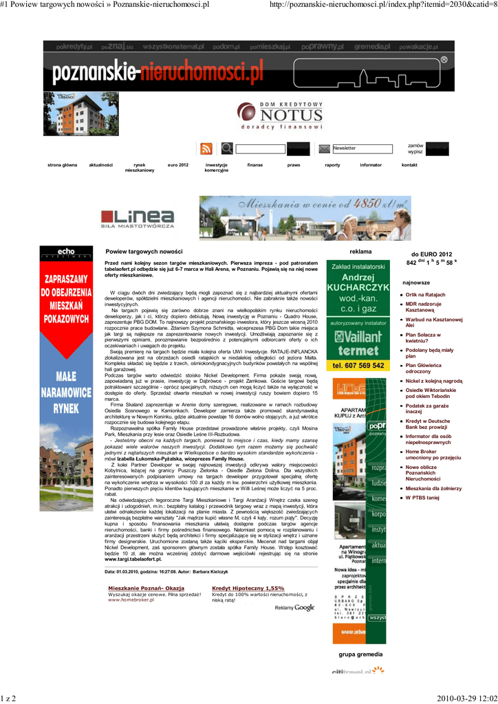 #1 Powiew targowych nowości » Poznanskie-nieruchomosci.pl 1z2 http://poznanskie-nieruchomosci.pl/index.php?itemid=2030&catid=8 Szukaj strona główna aktualności rynek mieszkaniowy euro 2012 inwestycje komercyjne finanse prawo Powiew targowych nowości zamów wypisz Newsletter raporty informator reklama Przed nami kolejny sezon targów mieszkaniowych. Pierwsza impreza - pod patronatem tabelaofert.pl odbędzie się juŜ 6-7 marca w Hali Arena, w Poznaniu. Pojawią się na niej nowe oferty mieszkaniowe. Wyslij kontakt do EURO 2012 842 dni 1 h 5 m 58 s najnowsze W ciągu dwóch dni zwiedzający będą mogli zapoznać się z najbardziej aktualnymi ofertami deweloperów, spółdzielni mieszkaniowych i agencji nieruchomości. Nie zabraknie takŜe nowości inwestycyjnych. Na targach pojawią się zarówno dobrze znani na wielkopolskim rynku nieruchomości deweloperzy, jak i ci, którzy dopiero debiutują. Nową inwestycję w Poznaniu - Quadro House, zaprezentuje PBG DOM. To najnowszy projekt poznańskiego inwestora, który jeszcze wiosną 2010 rozpocznie prace budowlane. Zdaniem Szymona Schmidta, wiceprezesa PBG Dom takie miejsca jak targi są najlepsze na zaprezentowanie nowych inwestycji. UmoŜliwiają zapoznanie się z pierwszymi opiniami, porozmawianie bezpośrednio z potencjalnymi odbiorcami oferty o ich oczekiwaniach i uwagach do projektu. Swoją premierę na targach będzie miała kolejna oferta UWI Inwestycje. RATAJE-INFLANCKA zlokalizowana jest na obrzeŜach osiedli ratajskich w niedalekiej odległości od jeziora Malta. Kompleks składać się będzie z trzech, ośmiokondygnacyjnych budynków powstałych na wspólnej hali garaŜowej. Podczas targów warto odwiedzić stoisko Nickel Development. Firma pokaŜe swoją nową, zapowiadaną juŜ w prasie, inwestycję w Dąbrówce - projekt Zamkowa. Goście targowi będą potraktowani szczególnie - oprócz specjalnych, niŜszych cen mogą liczyć takŜe na wyłączność w dostępie do oferty. SprzedaŜ otwarta mieszkań w nowej inwestycji ruszy bowiem dopiero 15 marca. Firma Skaland zaprezentuje w Arenie domy szeregowe, realizowane w ramach rozbudowy Osiedla Sosnowego w Kamionkach. Deweloper zamierza takŜe promować skandynawską architekturę w Nowym Koninku, gdzie aktualnie powstaje 16 domów wolno stojących, a juŜ wkrótce rozpocznie się budowa kolejnego etapu. Rozpoznawalna spółka Family House przedstawi prowadzone właśnie projekty, czyli Mosina Park, Mieszkania przy lesie oraz Osiedle Leśne III-Rozbudowa. - Jesteśmy obecni na kaŜdych targach, poniewaŜ to miejsce i czas, kiedy mamy szansę pokazać wiele walorów naszych inwestycji. Dodatkowo tym razem moŜemy się pochwalić jednymi z najtańszych mieszkań w Wielkopolsce o bardzo wysokim standardzie wykończenia mówi Izabella Łukomska-PyŜalska, wiceprezes Family House. Z kolei Partner Developer w swojej najnowszej inwestycji odkrywa walory miejscowości Kobylnica, leŜącej na granicy Puszczy Zielonka - Osiedle Zielona Dolina. Dla wszystkich zainteresowanych podpisaniem umowy na targach deweloper przygotował specjalną ofertę na wykończenie wnętrza w wysokości 100 zł za kaŜdy m kw. powierzchni uŜytkowej mieszkania. Ponadto pierwszych pięciu klientów kupujących mieszkanie w Willi Leśnej moŜe liczyć na 5 proc. rabat. Na odwiedzających tegoroczne Targi Mieszkaniowe i Targi AranŜacji Wnętrz czeka szereg atrakcji i udogodnień, m.in.: bezpłatny katalog i przewodnik targowy wraz z mapą inwestycji, która ułatwi odnalezienie kaŜdej lokalizacji na planie miasta. Z pewnością większość zwiedzających zainteresują bezpłatne warsztaty "Jak mądrze kupić własne M, czyli 4 kąty, rozum piąty". Decyzję kupna i sposobu finansowania mieszkania ułatwią dostępne podczas targów agencje nieruchomości, banki i firmy pośrednictwa finansowego. Natomiast pomocą w rozplanowaniu i aranŜacji przestrzeni słuŜyć będą architekci i firmy specjalizujące się w stylizacji wnętrz i uznane firmy designerskie. Uruchomione zostaną takŜe kąciki eksperckie. Mecenat nad targami objął Nickel Development, zaś sponsorem głównym została spółka Family House. Wstęp kosztować będzie 10 zł, ale moŜna wcześniej zdobyć darmowe wejściówki rejestrując się na stronie www.targi.tabelaofert.pl. Orlik na Ratajach MDR nadzoruje Kasztanową Warbud na Kasztanowej Alei Plan Sołacza w kwietniu? Podolany będą miały plan Plan Główieńca odroczony Nickel z kolejną nagrodą Osiedle Wiktoriańskie pod okiem Tebodin Podatek za garaŜe inaczej Kredyt w Deutsche Bank bez prowizji Informator dla osób niepełnosprawnych Home Broker umocniony po przejęciu Nowe oblicze Poznańskich Nieruchomości Mieszkania dla Ŝołnierzy W PTBS taniej Data: 01.03.2010, godzina: 16:27:08. Autor: Barbara Kielczyk Mieszkanie Poznań- Okazja Kredyt Hipoteczny 1,55% Wyszukaj okazje cenowe. Pilna sprzedaŜ! www.homebroker.pl Kredyt do 100% wartości nieruchomości, z niską ratą! www.GetinBank.pl grupa gremedia 2010-03-29 12:02 #1 Powiew targowych nowości » Poznanskie-nieruchomosci.pl 2z2 http://poznanskie-nieruchomosci.pl/index.php?itemid=2030&catid=8 Copyright © 2007 - 2010 gremedia.pl reklama | kontakt | zasady korzystania z serwisu | wykonanie: gremedia.pl Serwis przetestowano w przeglądarkach: Opera 10.10, Firefox 3.5.7, Safari 4.0.4, Internet Explorer 8.0, Google Chrome 3.0, Netscape Navigator 9.0.0.6 1 odwiedzający 2010-03-29 12:02