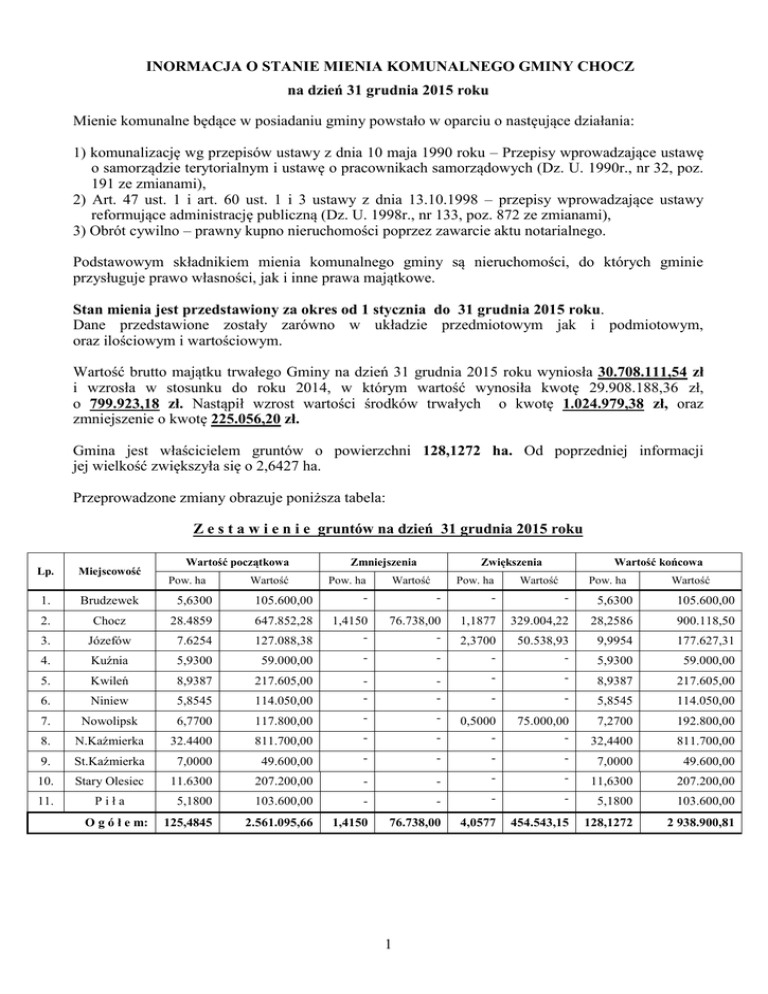 inormacja o stanie mienia komunalnego gminy chocz - BIP