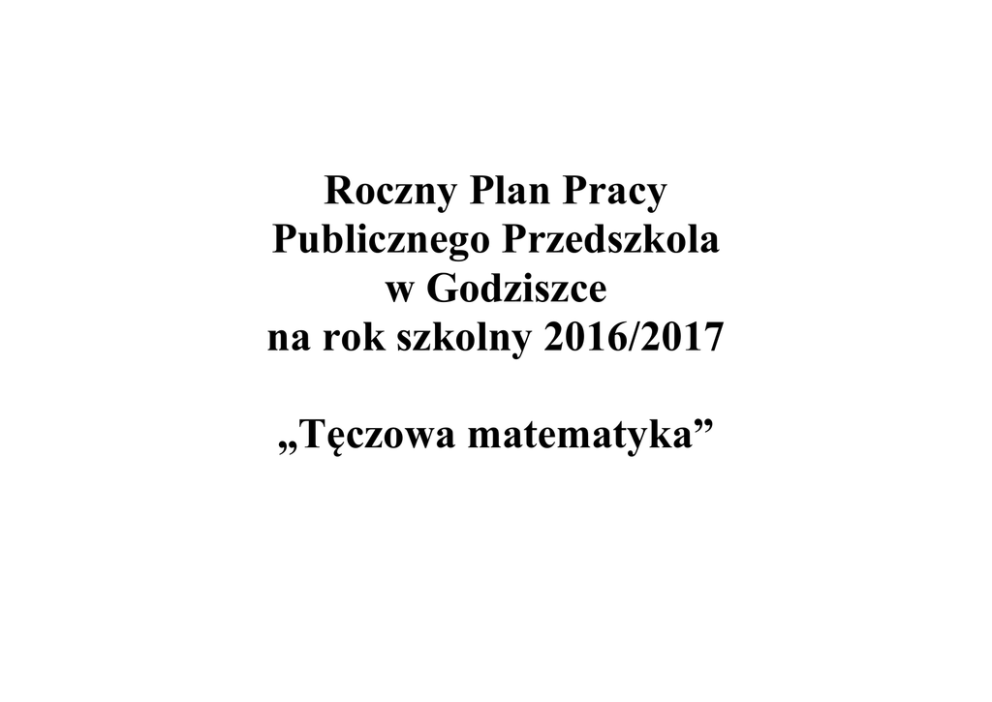 Roczny Plan Pracy Publicznego Przedszkola w Godziszce na rok