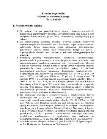 Szkolny regulamin dziennika elektronicznego Novo Szkoła I