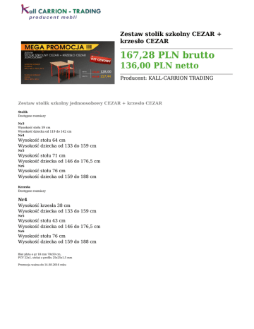 Zestaw stolik szkolny CEZAR + krzesło CEZAR 167,28 PLN brutto