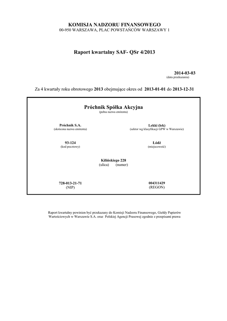 Raport kwartalny SAF- QSr 4/2013