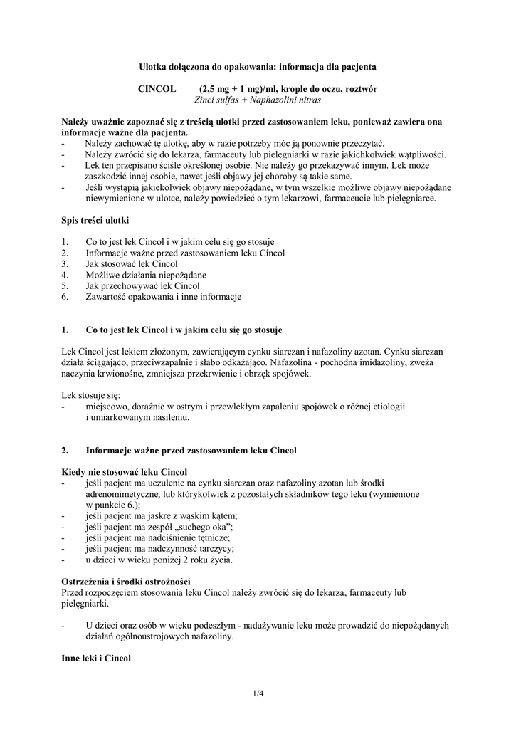 Jak stosować lek Cincol