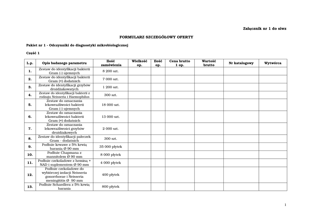 Załącznik nr 1 do siwz FORMULARZ SZCZEGÓŁOWY OFERTY