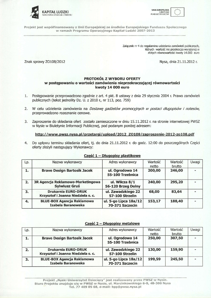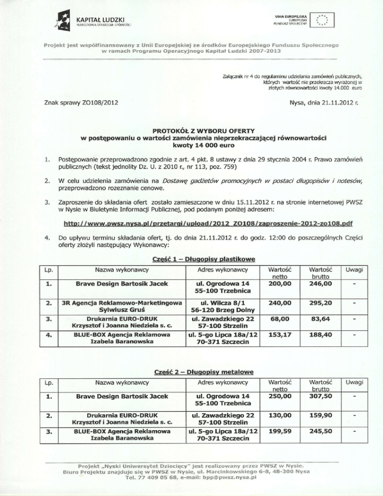 W celu udzieleniazam6wieniana Dostawe gadzeftiw promocyjnych w postaci dlugopbt5wi notes6v