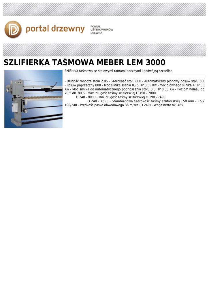 SZLIFIERKA TAŚMOWA MEBER LEM 3000