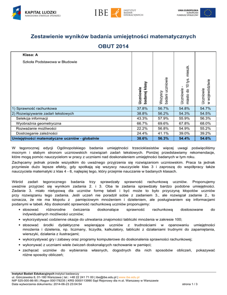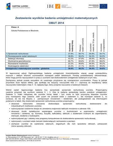 Zestawienie wyników badania umiejętności matematycznych OBUT