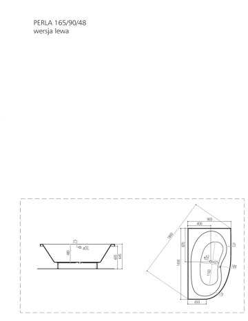 PERLA 165/90/48 wersja lewa 900 52 1650 425 180 1100 � 605 645 52 480 75 870 75 186 0 400 75 650