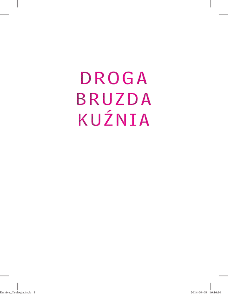Escriva_Trylogia.indb 1 2014-09-08 16:16:16 Escriva_Trylogia.indb 2 2014-09-08 16:16:17 Escriva_Trylogia.indb 3 ĂZ - RVHPDU ãD(VFUL Y Á Wydanie czwarte 2014-09-08 16:16:17 Escriva_Trylogia.indb 4 2014-09-08 16:16:17 Escriva_Trylogia.indb 5 Cieszę się, że Wydawnictwo Święty Wojciech przygotowało nową polską edycję trylogii dzieł św. Josemaríi Escrivy. Zarówno Droga, jak i Bruzda oraz Kuźnia należą już do klasyki literatury duchowej. Każda z tych książek przełożona została na wiele języków i znalazła czytelników na wszystkich kontynentach. Podkreślić należy fakt, że na przestrzeni ostatniego półwiecza wielokrotnie cytowali je w swoim nauczaniu Papieże. Benedykt XVI pisał: „Interpretacja Pisma Świętego nie byłaby pełna, gdybyśmy nie wysłuchali również tych, którzy naprawdę żyli słowem Bożym, czyli świętych. (...) Każdy święty jest jakby promieniem światła wychodzącym ze słowa Bożego” (Verbum Domini, nr 48). Ojciec święty wylicza tu św. Ignacego Loyolę, św. Jana Bosko i innych świętych, także „św. Josemaríę Escrivę i jego przepowiadanie o powszechnym powołaniu do świętości” (tamże). Nic dziwnego zatem, że w obecnym wydaniu na marginesach tekstu umieszczone zostały odsyłacze biblijne. Założyciel Opus Dei odkrył na nowo ze szczególną siłą głębię tej prostej, ale zaskakującej prawdy ewangelicznej: wszyscy wierni – nie tylko zakonnicy czy kapłani – wezwani zostali do doskonałości, do pełni życia chrześcijańskiego. Dla św. Josemaríi świętość nie jest abstrakcją. Wręcz przeciwnie, powinna urzeczywistniać się w życiu każdego wiernego nieustannie: w pracy zawodowej, w życiu rodzinnym, w zaangażowaniu publicznym. 2014-09-08 16:16:17 Escriva_Trylogia.indb 6 6 | DROGA Cechą charakterystyczną każdej z książek składających się na tę trylogię jest interaktywność. Słowo Boże oświeca i mobilizuje. Podobnie krótkie myśli św. Josemaríi poruszają czytelnika, nie pozostawiają go obojętnym, wymagają od niego odpowiedzi i zastosowania w życiu. Tylko Bóg wie, dla ilu ludzi rozważanie Drogi, Bruzdy i Kuźni stało się okazją do nawrócenia, do stawiania sobie bardziej ambitnych celów życiowych, do całkowitego oddania się Bogu. Życzę wszystkim czytelnikom, by odnaleźli w tej książce inspirację do lepszego życia, bliższego Boga i bliźnich. Abp Stanisław Gądecki Metropolita Poznański Przewodniczący Konferencji Episkopatu Polski 2014-09-08 16:16:17 Escriva_Trylogia.indb 7 2014-09-08 16:16:17 Escriva_Trylogia.indb 8 Wydanie siedemnaste 2014-09-08 16:16:17 Escriva_Trylogia.indb 9 Dedykacja dla Polaków Z wielkim uczuciem dla najukochańszej Polski i dla wszystkich Polaków, którzy będą czytać to wydanie Drogi. Rzym, Wielkanoc 1969 roku. Josemaría Escrivá de B. Polski przekład Drogi jest jedynym wydaniem, dla którego św. Josemaría napisał osobistą dedykację. 2014-09-08 16:16:18 Escriva_Trylogia.indb 10 2014-09-08 16:16:18 Escriva_Trylogia.indb 11 Czytaj te rady powoli. Rozważaj te myśli bez pośpiechu. Mówię ci o tych sprawach na ucho, w poufałości przyjaciela, brata, ojca. Tych zwierzeń słucha sam Bóg. Nie powiem ci nic nowego. Poruszę twoje wspomnienia, żeby obudzić jakąś myśl, która cię dotknie; a wówczas poprawisz swoje życie, wkroczysz na drogę modlitwy i Miłości. I w końcu staniesz się człowiekiem z zasadami, zdolnym do głębokiej oceny. 2014-09-08 16:16:18 Escriva_Trylogia.indb 12 2014-09-08 16:16:18 Escriva_Trylogia.indb 13 1 Niech twoje życie nie mija bezpłodnie. – Bądź pożyteczny. – Zostaw po sobie ślad. – Świeć światłem swojej wiary i miłości. Swoim życiem apostoła zmyj lepkie, brudne ślady pozostawione przez plugawych siewców nienawiści. – I oświetlaj wszystkie ziemskie drogi ogniem Chrystusa, który nosisz w sercu. 2 Oby twoja postawa i twoje rozmowy były takie, ażeby wszyscy, widząc cię lub słysząc, mogli powiedzieć: „Ten człowiek czyta życie Jezusa Chrystusa”. 3 Powaga. – Porzuć fochy i czułostkowość płochej dziewczyny czy dziecka. – Niech twoja postawa zewnętrzna odzwierciedla spokój i ład twojego ducha. 4 Nie mów: „Taki już jestem... To kwestia charakteru”. Nie – to kwestia braku charakteru. Bądź mężny – esto vir*. 1 Krl 2,2 5 Naucz się mówić „nie”. * Św. Josemaría Escrivá cytuje zazwyczaj Wulgatę, niekiedy dodając również ten sam cytat biblijny w przekładzie na język hiszpański. Cytaty z Wulgaty zachowujemy w ich oryginalnym brzmieniu, pozostałe przytaczamy za Biblią Tysiąclecia (wyd. 5) lub – w wyjątkowych wypadkach – za Biblią Poznańską (wyd. 4). 2014-09-08 16:16:18 Escriva_Trylogia.indb 14 14 | DROGA 6 Odwróć się od nikczemnika, gdy ci szepcze do ucha: „Po co komplikować sobie życie?”. 7 Nie miej ducha „zaściankowego”. – Poszerzaj swoje serce, aż stanie się uniwersalne, „katolickie”. Nie trzepocz skrzydłami niczym kura, skoro możesz wzbić się wysoko jak orzeł. 8 Spokój. – Po co się złościć, skoro złoszcząc się, obra- żasz Boga, sprawiasz przykrość bliźniemu, sam czujesz się źle... A w końcu i tak musisz przestać się złościć. 9 Powiedz to samo innym tonem, bez gniewu. Twoje argumenty nabiorą wówczas mocy i – przede wszystkim – nie obrazisz Boga. 10 Nie upominaj, kiedy czujesz oburzenie z powodu popełnionego uchybienia. – Zaczekaj do następnego dnia, albo i dłużej. – Wtedy dopiero, ze spokojem i czystą intencją, nie omieszkaj udzielić upomnienia. – Więcej zyskasz jednym serdecznym słowem niż trzygodzinną kłótnią. – Powściągaj swój temperament. 11 Wola. – Energia. – Przykład. – Co ma być wykonane, wykonaj... Bez wahania... Bez oglądania się na innych... Bez tego ani Cisneros nie byłby Cisnerosem*, ani Teresa de Ahumada nie byłaby Świętą Teresą..., ani Iñigo de Loyola Świętym Ignacym... Bóg i odwaga! – Regnar