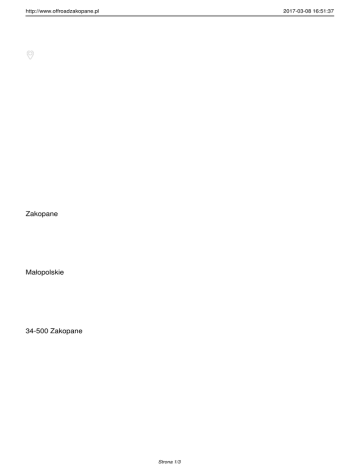 http://www.offroadzakopane.pl 2017-03-08 16:51:37 Zakopane Małopolskie 34-500 Zakopane Strona 1/3 http://www.offroadzakopane.pl 2017-03-08 16:51:37 Tel: +48 733 550 577 Tel: +48 501 571 262 E-mail: [email protected] %formMail:[email protected]% Strona 2/3 http://www.offroadzakopane.pl 2017-03-08 16:51:37 Strona 3/3