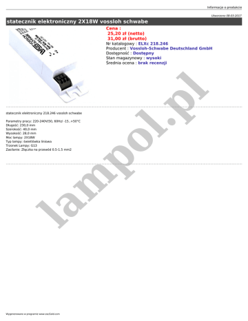 statecznik elektroniczny 2x18/36W vossloh schwabe