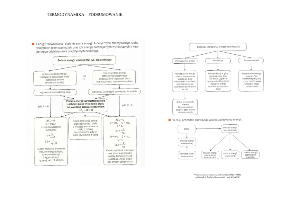 TERMODYNAMIKA – PODSUMOWANIE Przygotowano na podstawie podręcznika ŚWIAT FIZYKI pod redakcją Barbary Sagnowskiej – wyd. ZAMKOR