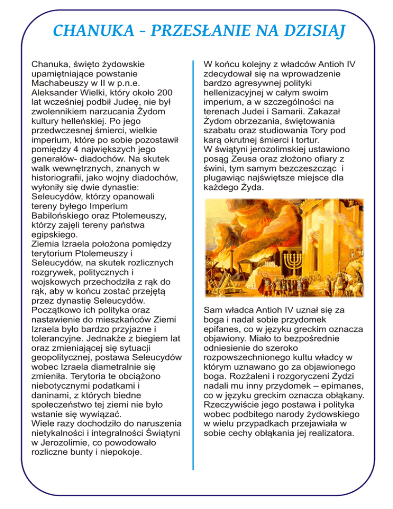CHANUKA - PRZESŁANIE NA DZISIAJ