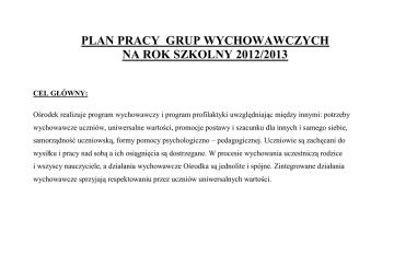 plan pracy grup wychowawczych na rok szkolny 2012/2013