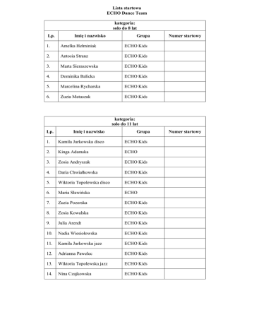 Lista startowa ECHO Dance Team kategoria: solo do 8 lat Lp. Imię i
