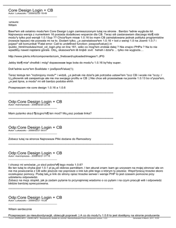 Core Design Login + CB Autor: Lukaszskc - 2008/02/20 19:49 _____________________________________ :unsure: Witam Bawi³em siê ostatnio modu³em Core Design Login zamieszczonym tutaj na stronie . Bardzo ³adnie wygl±da itd. Najnowsza wersja z numerkiem 16 posiada dodatkowo wsparcie dla CB. Teraz siê zastanawiam dlaczego kto¶ robi modu³y tylko pod wersjê 1.0.13up ?? Chcia³bym mieæ 1.0.16 bo mam CB zainstalowane jednak polityka programistów (nowsze lepsze) nie pozwala mi na to. Dodam tylko, ¿e zainstalowa³em 1.0.16 + bot z wersji 1.0 na Joomli 1.0.7 i pojawi³ siê komunikat "Fatal error: Call to undefined function: josspoofvalue() in /public_html/modules/mod_cd_login.php on line 161, wiêc co mog³em zrobiæ dalej ? Nie znaj±c PHPa ? Na to nie wpadliby nawet najstarsi górale. Otó¿ skasowa³em tê linijkê :evil: heheh i dzia³a ... tylko nie wygl±da.... http://www.jokris.info/components/com_fireboard/uploaded/images/1.JPG Jakby kto¶ mia³ chwilkê i móg³ dopasowaæ tego bota do modu³u 1.0.16 by³oby super. Dok³adnie sun±³em $validate = josSpoofValue(1); Teraz testuje ten "rozbrojony modu³" i widzê, ¿e jednak nie dzia³a jak potrzeba ustawi³em ³±cz CB i wcale nie ³±czy :/ U¿ytkownik siê zarejestruje ale nie ma swojego profilu w CB :| Nie chce siê przesiadaæ na joomle 1.0.13 bo s³ysza³em, ¿e jest lipna, a modu³ mi siê bardzo podoba ehhh Przepraszam nie core design 1.0.16 a 1.0.6 ============================================================================ Odp:Core Design Login + CB Autor: marcinprezes - 2008/02/20 22:38 _____________________________________ Mam pytanko sk±d ¶ci±gno³e¶ ten mod? Mo¿esz podaæ linka? ============================================================================ Odp:Core Design Login + CB Autor: Lukaszskc - 2008/02/21 00:01 _____________________________________ Zobacz tutaj na stronce Najnowsze Pliki dodane do Remository ============================================================================ Odp:Core Design Login + CB Autor: marcinprezes - 2008/02/21 01:18 _____________________________________ I chcesz mi wmówiæ ¿e st±d pobra³e¶ tego moda 1.0.6? Bo ten tutaj to chyba jest 1.0.1 pl je¿eli dobrze pamiêtam. I ten akurat znam /sam go urzywam na mojej stronce/ ale on nie ma powi±zania z CB wiêc jeszcze raz poprosze o link lub pliki tego o którym ty piszesz. Wspó³pracuj troszke skoro oczekujesz pomocy. Podaj tak¿e link do strony opisz troszke serwer i wersje PHP to jest czasem pomocne przy udzielaniu odpowiedzi. Zobacz na moj± stopkê, jak ja zadam pytanie to przynajmniej wiadomo o co pytam i na czym pracujê wiê i odpowiedz bêdzie bardziej sprecyzowana. ============================================================================ Odp:Core Design Login + CB Autor: Lukaszskc - 2008/02/21 15:28 _____________________________________ Witam serdecznie Przepraszam za niesubordynacjê, obiecujê poprawê :) A co do modu³u 1.0.6 to jest dostêpny na stronie producenta Forum JOKRIS.INFO - JOKRIS.INFO - Rozszerzenia, dodatki do Joomla! i Mambofireboard Forum Component version: 1.0.0 Generated: 8 March, 2017, 15:55 proszê oto link Pozdrawiam, £ukasz ============================================================================ Odp:Core Design Login + CB Autor: Lukaszskc - 2008/02/22 12:23 _____________________________________ Hej I jak Marcin? Pobra³e¶ sobie nowy modulik? ============================================================================ Odp:Core Design Login + CB Autor: Lukaszskc - 2008/02/24 13:41 _____________________________________ Temat chyba mo¿na zamkn±æ... ============================================================================ Forum JOKRIS.INFO - JOKRIS.INFO - Rozszerzenia, dodatki do Joomla! i Mambofireboard Forum Component version: 1.0.0 Generated: 8 March, 2017, 15:55