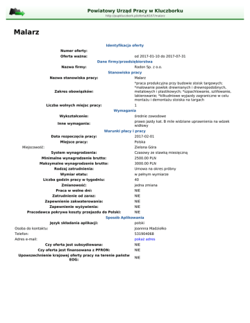 Malarz - Powiatowy Urząd Pracy w Kluczborku