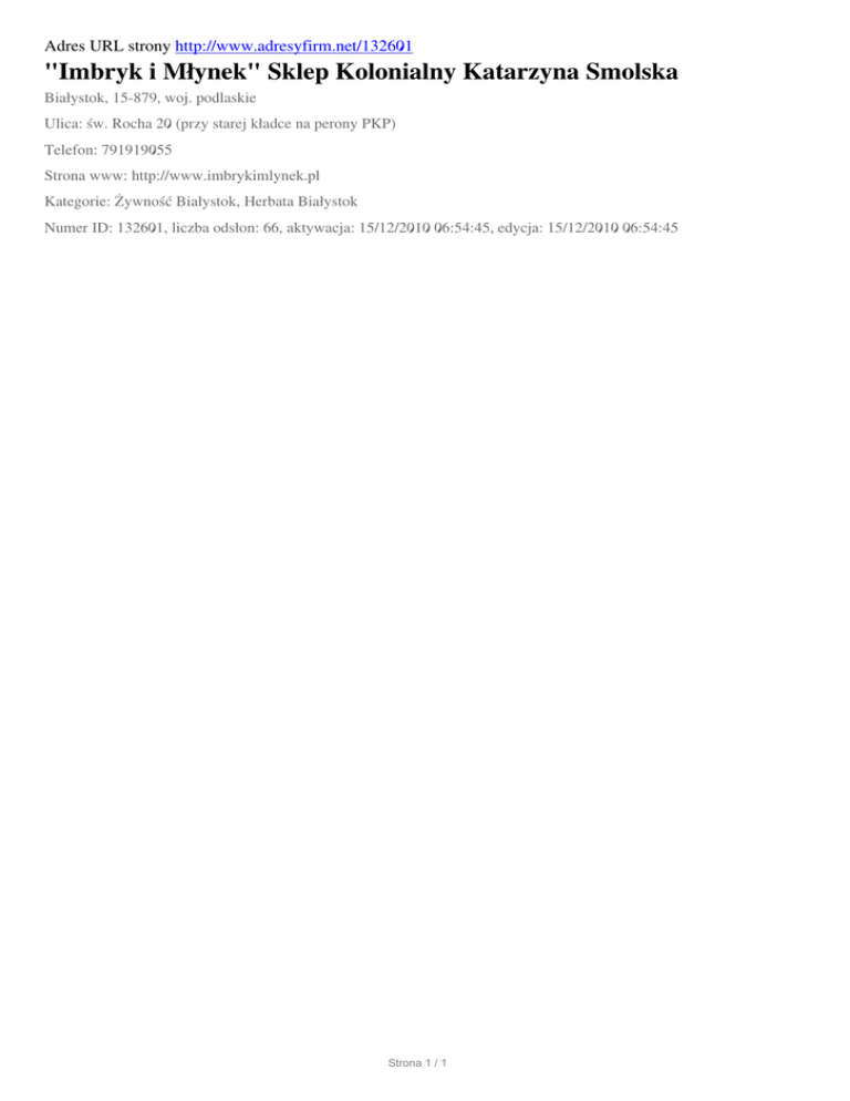 "Imbryk i Mlynek" Sklep Kolonialny Katarzyna Smolska