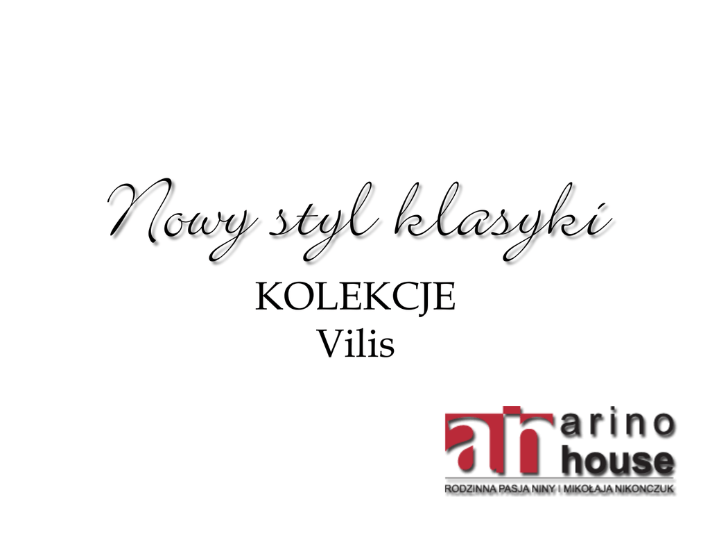 Nowy styl klasyki KOLEKCJE Vilis Vilis Powrót do minionych lat … Klasyczna linia wzornicza. Ręczne przetarcie na krawędziach i załamaniach frezowanych drzwiczek, to “postarzanie” uwypuklające szlachetność drewna. Fronty, cokoły, ramy wykonane z drewna litego olchowego. Korpusy wykonane z płyty wiórowej malowanej. Vilis Powrót do minionych lat … Komoda 110: 109 x 90 x 47 Komoda 125: 79x 90 x 47 Kredens 126: 154 x 100 x 47 Szafka RTV 105: 110 X 70 X 47 Komoda 115: 118 x 118 x 47 Vilis Komoda 119: 57 x 96 x 47 Powrót do minionych lat … Kredens 118: 57 x 123 x 47 Kredens 120: 108 x 184 x 46 Vilis Powrót do minionych lat … Stół 141: 140 x 75 x 85 Stół 142: 120 x 75 x 70 Krzesło 160: 40 x 93 x 50 Pomocnik 135: 120 x 80 40 Ława 155: 144 x 87 x 57 Kontakt PRODUKCJA Salony Firmowe Hajnówka ul. Warszawska 116A tel. +48 85 682 32 23 tel. kom +48 516 056 899 e-mail: [email protected] Warszawa DOMOTEKA ul. Malborska 41 lok. ms 28 tel. kom +48 505 132 040 tel. +48 22 331 17 50 e-mail: [email protected] Warszawa URSYNÓW al. KEN 46 lok. U6 tel. kom +48 500 294 711 tel. +48 22 44 675 44 e-mail: [email protected] Białystok SZKOŁA INSPIRACJI ul. Kombatantów 7 tel. kom +48 505 132 041 e-mail: [email protected] Gdynia BUDNIQ DESIGN al. Zwycięstwa 236 u3 tel. kom +48 509 379 990 tel. kom +48 730 500 103 e-mail: [email protected]