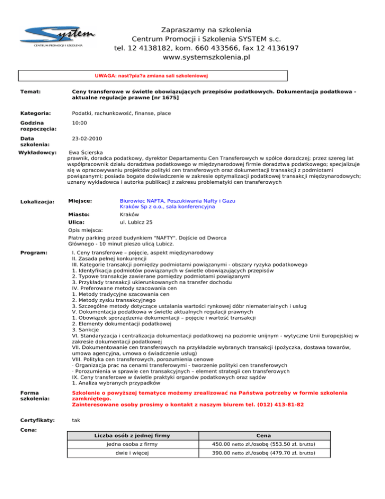 Pobierz program - Szkolimy od 20 lat, SYSTEM Szkolenia