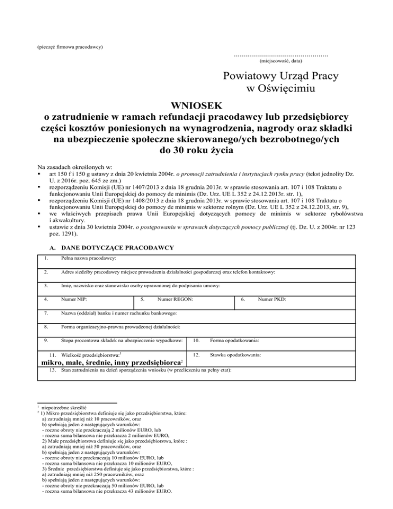 Wniosek o zatrudnienie - Powiatowy Urząd Pracy w Oświęcimiu