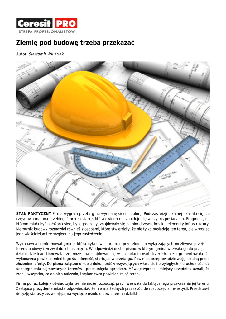 Ziemię pod budowę trzeba przekazać Autor: Sławomir Wikariak STAN FAKTYCZNY Firma wygrała przetarg na wymianę sieci cieplnej. Podczas wizji lokalnej okazało się, że częściowo ma ona przebiegać przez działkę, która ewidentnie znajduje się w czyimś posiadaniu. Fragment, na którym miała być położona sieć, był ogrodzony, znajdowały się na nim drzewa, krzaki i elementy infrastruktury. Kierownik budowy rozmawiał również z osobami, które stwierdziły, że nie tylko posiadają ten teren, ale wręcz są jego właścicielami ze względu na jego zasiedzenie. Wykonawca poinformował gminę, która była inwestorem, o przeszkodach wyłączających możliwość przejścia terenu budowy i wezwał do ich usunięcia. W odpowiedzi dostał pismo, w którym gmina wezwała go do przejęcia działki. Nie kwestionowała, że może ona znajdować się w posiadaniu osób trzecich, ale argumentowała, że wykonawca powinien mieć tego świadomość, startując w przetargu. Powinien przeprowadzić wizję lokalną przed złożeniem oferty. Do pisma załączono kopię dokumentów wzywających właścicieli przyległych nieruchomości do udostępnienia zajmowanych terenów i przesunięcia ogrodzeń. Mówiąc wprost – miejscy urzędnicy uznali, że zrobili wszystko, co do nich należało, i wykonawca powinien zająć teren. Firma po raz kolejny oświadczyła, że nie może rozpocząć prac i wezwała do faktycznego przekazania jej terenu. Zastępca prezydenta miasta odpowiedział, że nie ma żadnych przeszkód do rozpoczęcia inwestycji. Przedstawił decyzję starosty zezwalającą na wycięcie ośmiu drzew z terenu działki. Inwestor przesłał pismo z odstąpieniem od umowy z winy wykonawcy. Stwierdził, że ten bez przyczyn zwleka z rozpoczęciem inwestycji. Firma zrobiła to samo, odstępując od umowy z winy leżącej po stronie inwestora. Ostatecznie wniosła sprawę do sądu, domagając się zapłaty kary umownej oraz zwrotu kwoty wniesionej jako zabezpieczenie należytego wykonania umowy. UZASADNIENIE Sąd okręgowy zasądził od miasta karę umowną w wysokości 20 proc. wartości umowy oraz nakazał zwrot wpłaconego zabezpieczenia należytego wykonania umowy. Zasądził też karę za nienależyte wykonanie umowy (opóźnienie w przekazaniu terenu). Sąd nie miał wątpliwości, że racja leży po stronie wykonawcy i że to on, jako jedyny, skutecznie odstąpił od umowy. Powołał się na art. 342 kodeksu cywilnego. Zgodnie z nim nie wolno naruszać samowolnie posiadania, chociażby posiadacz był w złej wierze. Sąd podkreślił, że przepis wprowadza bezwzględny zakaz naruszania posiadania. Ma to na celu zapobieganie samowolom. Zakaz ten odnosi się do każdego posiadania, bez względu na jego szczególne cechy – zarówno więc do posiadania samoistnego, jak i zależnego, w dobrej i w złej wierze, posiadania zgodnego z prawem i nieodpowiadającego prawu, niewadliwego oraz nabytego w sposób wadliwy (samowolnie wbrew woli dotychczasowego posiadacza). Zakaz naruszania posiadania obowiązuje każdego, zarówno osobę trzecią, jak i uprawnionego. Oznacza to, że nawet właścicielowi nie wolno samowolnie naruszać posiadania wykonywanego bezprawnie przez inną osobę względem jego rzeczy. Inwestor nie mógł wymagać od firmy, by ta zajęła teren. Sam go bowiem skutecznie nie przekazał. Chociaż z dokumentów wynikało, że należy on do miasta, to jednak znajdował się w posiadaniu osób trzecich, którzy nasadzili tam drzewa i ogrodzili teren. Zdaniem sądu, odstąpienie od umowy przez gminę, chociaż formalnie dokonane wcześniej, było bezskuteczne. Sąd nie dopatrzył się jakiejkolwiek winy po stronie przedsiębiorcy, który deklarował chęć rozpoczęcia inwestycji, gdy tylko zostanie mu skutecznie przekazany teren, na którym ma ona przebiegać. Miejscy urzędnicy próbowali jeszcze powoływać się na istotną zmianę okoliczności, która także miała im dawać podstawę do odstąpienia od umowy. Nie przekonali sądu, który zauważył, że w dacie zawierania umowy sporny teren znajdował się w posiadaniu osób trzecich. Sąd uznał, że to firma wykonawcza jako jedyna miała podstawy do odstąpienia od umowy.©? Wyrok Sądu Okręgowego w Łodzi z 31 lipca 2015 r., sygn. akt X GC 79/13 DGP PRZYPOMINA Podobne orzeczenia ● ● ● Postanowienie SA w Szczecinie z 2 grudnia 2014 r., sygn. akt I ACa 687/14 Wyrok SO w Rzeszowie z 12 maja 2014 r., sygn. akt VI GC 10/13 Wyrok SA w Krakowie z 7 grudnia 2012 r., sygn. akt I ACa 1152/12 KOMENTARZ EKSPERTA Dokonanie wizji lokalnej Karol Kamiński radca prawny w kancelarii Krynicki, Dajczer, Kamiński Często w sporach o zakres zobowiązania wykonawcy podnosi się brak dokonania przez niego wizji lokalnej. Zgodnie z art. 29 ust. 1 ustawy – Prawo zamówień publicznych, to zamawiający ma opisać przedmiot zamówienia w sposób jednoznaczny i wyczerpujący, za pomocą dokładnych i zrozumiałych określeń, uwzględniając wszystkie wymagania i okoliczności mogące mieć wpływ na sporządzenie oferty. Z tego nie zwalnia go zobowiązanie wykonawców do dokonania wizji lokalnej. Jeżeli z dokumentacji przetargowej nie wynikało, że istnieje spór co do posiadania terenu, to zamawiający nie może zasłaniać się tym, że wykonawca mógł to sam sprawdzić przed złożeniem oferty. Co do zasady, jest możliwe nałożenie na wykonawców obowiązku przejęcia terenu nawet, jeśli istnieje spór o posiadanie, ale musiałoby to zostać precyzyjnie określone w specyfikacji istotnych warunków zamówienia wraz z umocowaniem wykonawcy do działania w tym sporze w imieniu zamawiającego. Nie mogę natomiast zgodzić się z zasądzeniem przez sąd, obok kary umownej za odstąpienie od umowy także kary za jej nienależyte wykonanie. W razie odstąpienia uważa się umowę za niezawartą, czyli nie można skutecznie dochodzić kar innych niż przewidziane na wypadek odstąpienia. © 2013 Henkel Polska sp. z o.o.