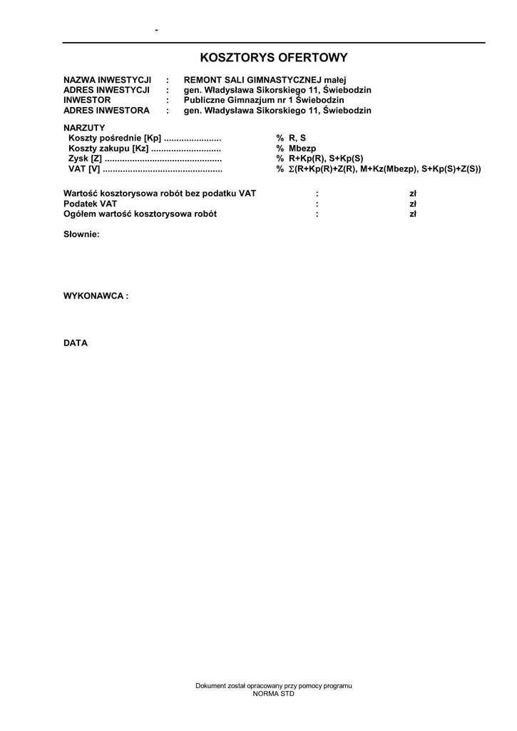 KOSZTORYS OFERTOWY