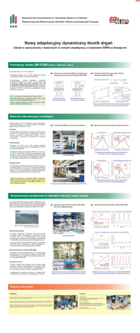 EMPA20120516 Akademia Górniczo-Hutnicza im. Stanis³awa Staszica w Krakowie Wydzia³ In¿ynierii Mechanicznej i Robotyki, Katedra Automatyzacji Procesów Nowy adaptacyjny dynamiczny t³umik drgañ Udzia³ w opracowaniu i badaniach w ramach wspó³pracy z instytutem EMPA w Szwajcarii Koncepcja uk³adu MR-STMD (Weber i Maœlanka, 2012) Koncepcja uk³adu MR-STMD polega na: Sterowanie sztywnoœci¹ przy u¿yciu t³umika magnetoreologicznego (MR) Dynamiczny t³umik drgañ (TMD) oraz adaptacyjny, pó³aktywny dynamiczny t³umik drgañ (MR-STMD) Modyfikacji uk³adu TMD - t³umik wiskotyczny zostaje zast¹piony t³umikiem magnetoreologicznym. . f des = k des xd + Fc-des sgn( x d ) Wymagana si³a t³umika MR: Zastosowaniu takiego sterowania t³umikiem magnetoreologicznym aby t³umik ten realizowa³ si³ê stanowi¹c¹ sumê si³y tarcia suchego oraz si³y sprê¿ystoœci dodatniej lub ujemnej. Takie sterowanie t³umikiem pozwala na adaptacyjne dostrojenie dzia³ania uk³adu MR-STMD do aktualnej czêstotliwoœci drgañ struktury chronionej. si³a sprê¿ystoœci B B A si³a si³a C C Uk³ad TMD do³¹czony do struktury chronionej Uk³ad MR-STMD do³¹czony do struktury chronionej obszar si³ aktywnych D D przemieszczenie wzglêdne t³umika T³umik magnetoreologiczny (MR): sterowany t³umik drgañ z ciecz¹ magnetoreologiczn¹ A obszar si³ aktywnych TMD: dynamiczny t³umik drgañ (Den Hartog, 1934) MR-STMD: adaptacyjny, pó³aktywny dynamiczny t³umik drgañ z t³umikiem magnetoreologicznym si³a tarcia prêdkoœæ wzglêdna t³umika Wymagana si³a t³umika MR dla ruchu harmonicznego w przypadku gdy si³a tarcia jest wiêksza od maksymalnej si³y sprê¿ystoœci Badania laboratoryjne prototypu Prototyp uk³adu MR-STMD do³¹czono do 20-metrowego mostu laboratoryjnego w instytucie EMPA w Szwajcarii. Badano drgania wymuszone mostu. Wyniki pomiarów dla wybranych konfiguracji mostu Prototyp MR-STMD oraz stanowisko badawcze Cel badañ obrotowy t³umik MR Przebieg badañ czujniki si³y t³umika MR i przemieszczenia Uk³ady MR-STMD oraz TMD zosta³y wstêpnie dostrojone do pierwszej postaci drgañ giêtnych mostu o znanej czêstotliwoœci. masa ruchoma, 27 kg zestaw sprê¿yn wersja podstawowa znormalizowana amplituda drgañ znormalizowana amplituda drgañ Analiza efektywnoœci t³umienia drgañ przy u¿yciu uk³adu MR-STMD w porównaniu do efektywnoœci t³umienia drgañ optymalnie dostrojonego uk³adu TMD w warunkach niepewnoœci parametrów struktury chronionej. 12 TMD 10 8 MR-STMD 6 4 f1 2 2.4 2.6 2.8 3 z redukcj¹ wspó³czynnika t³umienia o 30% 12 10 TMD MR-STMD 8 2 algorytmy sterowania 6 4 f1 2 3.2 3.4 3.6 2.4 2.6 2.8 czêstotliwoœæ wymuszenia (Hz) Nastêpnie porównano dzia³anie uk³adów TMD oraz MRSTMD w warunkach zmiennoœci czêstotliwoœci drgañ w³asnych mostu. Zmianê czêstotliwoœci drgañ w³asnych realizowano zwiêkszaj¹c lub zmniejszaj¹c obci¹¿enie mostu. Badania wykonano dla 13 konfiguracji mostu. 3 3.2 3.4 3.6 czêstotliwoœæ wymuszenia (Hz) Znormalizowana amplituda drgañ w funkcji czêstotliwoœci wymuszenia dla mostu o obci¹¿eniu nominalnym wzbudnik drgañ Potwierdzono wysok¹ efektywnoœæ t³umienia drgañ za pomoc¹ uk³adu MR-STMD. W przypadku zwiêkszenia lub zmniejszenia czêstotliwoœci rozpatrywanej postaci drgañ o ok. 10% obserwowana poprawa efektywnoœci t³umienia drgañ w stosunku do TMD wynosi 50%. obci¹¿enie dodatkowe obci¹¿enie nominalne MR-STMD wersja podstawowa znormalizowana amplituda drgañ znormalizowana amplituda drgañ Prototyp MR-STMD Rezultaty badañ 40 TMD 30 MR-STMD 2 algorytmy sterowania 20 10 f1 2.4 Badania prowadzono w instytucie EMPA w Szwajcarii (Swiss Federal Laboratories for Materials Science and Technology). Wykonawcy: dr Felix Weber (EMPA), dr in¿. Marcin Maœlanka (AGH). 23% 2.6 2.8 3 z redukcj¹ wspó³czynnika t³umienia o 30% 40 TMD 30 MR-STMD 2 algorytmy sterowania 20 10 3.2 f1 2.4 czêstotliwoœæ wymuszenia (Hz) uk³ad pomiarowo-steruj¹cy 51% 2.6 2.8 3 3.2 czêstotliwoœæ wymuszenia (Hz) Znormalizowana amplituda drgañ w funkcji czêstotliwoœci wymuszenia dla mostu o obci¹¿eniu zwiêkszonym Most laboratoryjny w EMPA z do³¹czonym prototypem MR-STMD Zastosowanie praktyczne w uk³adzie redukcji drgañ mostu Badania t³umików MR oraz uk³adów MR-STMD dla mostu wo³gogradzkiego natê¿enie pr¹du (A) Przypadek I: czêstotliwoœæ drgañ mniejsza o 20% od czêstotliwoœci nominalnej MR-STMD 4 4 k des < 0 3 2 2 0 1 -2 rezultat: sztywnoœæ MR-STMD 0 zostaje zmniejszona -4 si³a (kN) obrotowy t³umik MR Sterowanie si³¹ t³umików MR w uk³adzie MR-STMD czujnik si³y t³umika Drgania mostu wo³gogradzkiego, maj 2010 r. -100 kadr z filmu, Ÿród³o: YouTube czujnik przemieszczenia Wysok¹ dok³adnoœæ sterowania si³¹ t³umików MR uzyskano dziêki wykorzystaniu odwrotnego modelu t³umika MR oraz kompensuj¹cego sprzê¿enia zwrotnego od si³y t³umika. Do sterowania t³umikami MR zastosowano wysokiej klasy sterowniki programowalne. 0 50 -1 100 33 34 przemieszczenie wzglêdne (mm) si³ownik hydrauliczny Badania t³umików MR -50 36 37 38 Przypadek II: czêstotliwoœæ drgañ równa czêstotliwoœci nominalnej MR-STMD 4 4 k des = 0 Badania t³umików MR si³a (kN) 2 Przeprowadzono obszerne testy ka¿dego z 12 t³umików MR dla mostu. Rozpatrywano ró¿ne czêstotliwoœci i amplitudy drgañ, które mog¹ wyst¹piæ na moœcie. 0 -2 wartoœæ wymagana wartoœæ rzeczywista -4 -100 -50 0 50 3 2 1 0 -1 100 33 34 przemieszczenie wzglêdne (mm) 35 36 37 38 czas (s) si³ownik hydrauliczny Badania kompletnych uk³adów MR-STMD Badania koñcowe przeprowadzono na Uniwersytecie Bundeswehry w Monachium. Pojedynczy uk³ad MRSTMD sk³ada siê z masy 5200 kg, zestawu sprê¿yn oraz obrotowego t³umika MR. Przypadek III: czêstotliwoœæ drgañ wiêksza o 27% od czêstotliwoœci nominalnej MR-STMD 4 k des > 0 si³a (kN) 2 Instalacja na moœcie masa ruchoma MR-STMD, 5200 kg Celem instalacji jest t³umienie trzech postaci drgañ giêt