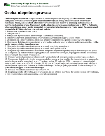 Osoba niepełnosprawna - Powiatowy Urząd Pracy w Pułtusku
