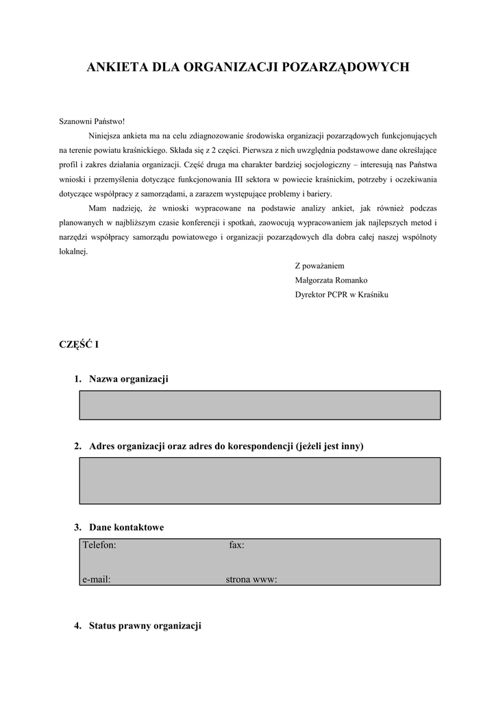 ANKIETA DLA ORGANIZACJI POZARZĄDOWYCH