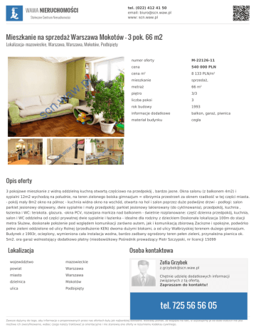 Mieszkanie na sprzedaż Warszawa Mokotów 66m2